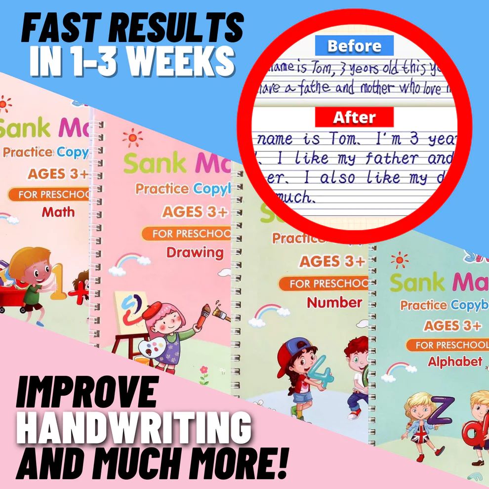 A Magic Copybooks segítségével gyermeke kézírása, matematikája, motorikus képességei és általános tanulási készségei egy hét gyakorlás alatt drámaian javulnak.