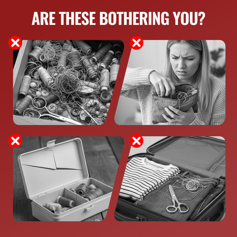 Éles tárgyakat tartalmaz, például tűket és ollókat. Gyermekektől elzárva tartandó.